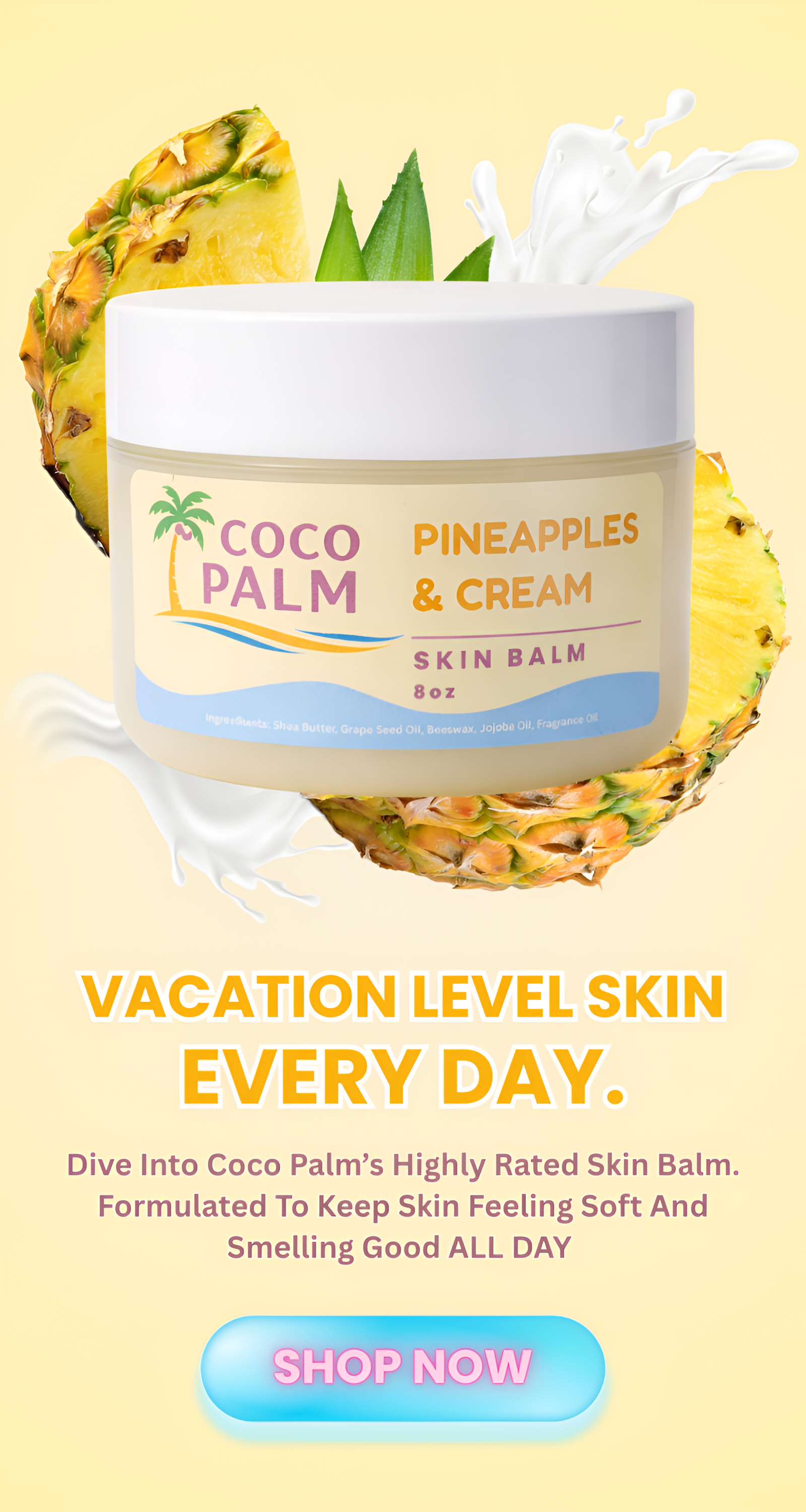 Coco Palm Skin Balms were made to be a complete luxurious skincare experience from the moment you open the jar and smell the dreamy tropical scents; to applying it from head-to- toe. You're in for a body care treat!